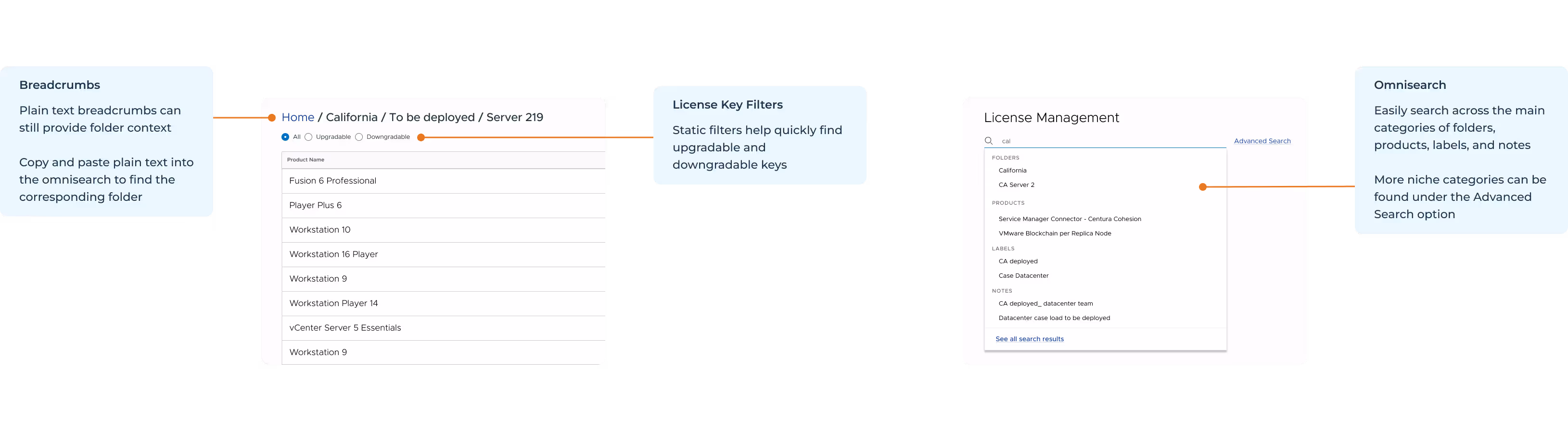 Customers were unable to easily identify license keys or know which folder they were stored in. As a workaround, they exported data to CSVs or manually added notes.
